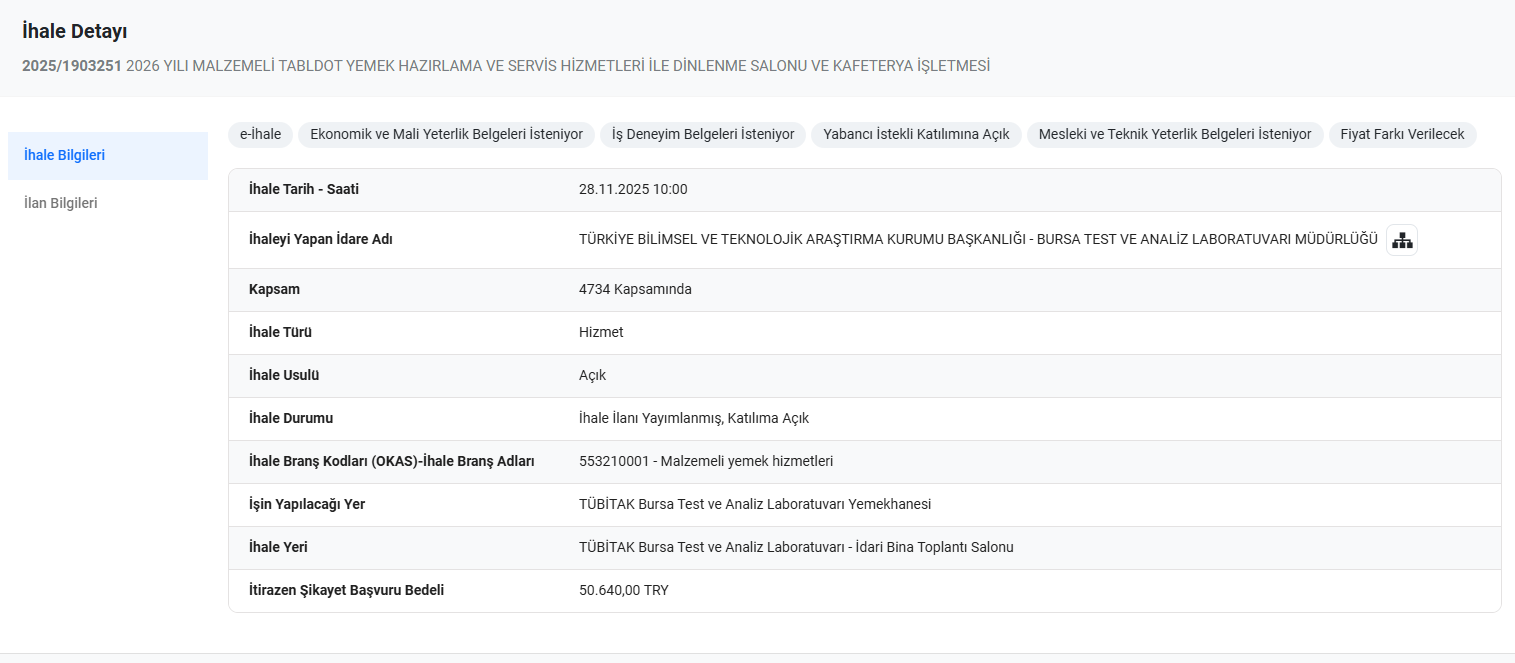 İhaleye ilişkin ayrıntılı bilgilere ve dokümanlara EKAP üzerinden 2025/1903251 ihale kayıt numarası ile ulaşılabilmektedir.